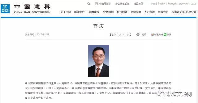 官慶簡歷,建筑集團官網(wǎng)截圖