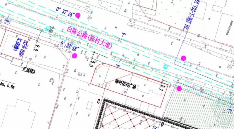 此區(qū)間全長約1.5公里,從陳村站始發(fā),沿陳村大道向南延伸,終止于陳村新城站,期間下穿及側(cè)穿陳村花卉廣場大樓、陳村立交、陳村變電大樓等沿路建構(gòu)筑物。