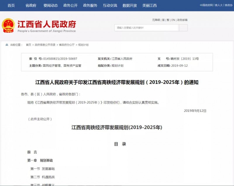 10月8日,記者從江西省人民政府官網(wǎng)獲悉,《江西省高鐵經(jīng)濟(jì)帶發(fā)展規(guī)劃(2019-2025年)》(下稱《規(guī)劃》)出爐并印發(fā),規(guī)劃期為2019-2025年,遠(yuǎn)期展望到2035年。