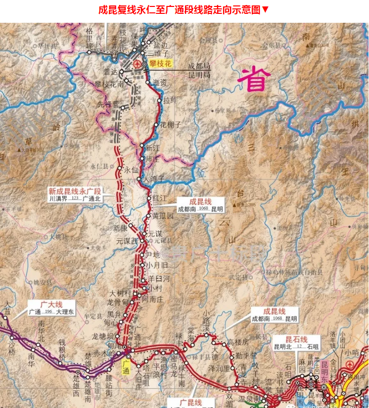 成昆鐵路永仁至廣通段擴能改造工程設(shè)計為國家I級雙線鐵路,川滇省界至大樹村(含)線路長92.009公里,大樹村至甸尾線路長28.431公里,全線總長120.44公里,設(shè)計時速160公里。