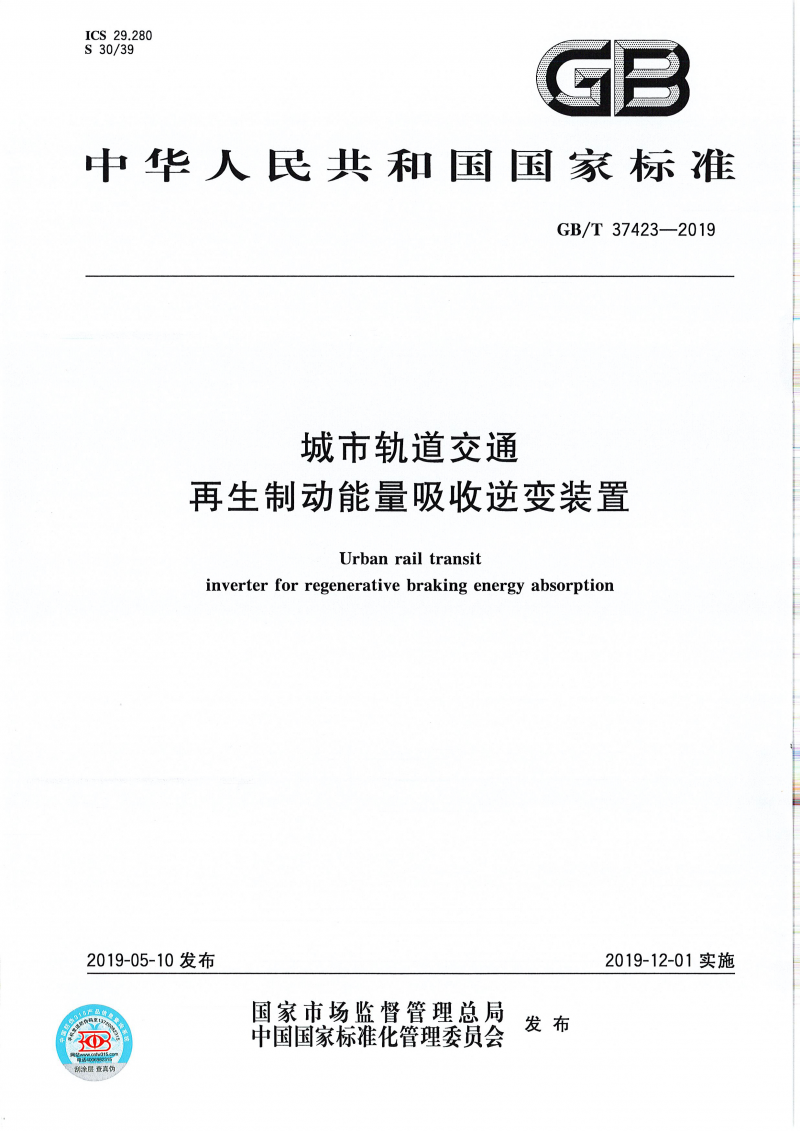 自2016年12月13日,由國(guó)標(biāo)委正式下達(dá)標(biāo)準(zhǔn)制定計(jì)劃,到2019年5月10日,國(guó)家市場(chǎng)監(jiān)督管理總局和國(guó)家標(biāo)準(zhǔn)化管理委員會(huì)聯(lián)合公布。歷經(jīng)兩年半的調(diào)研、編撰,新國(guó)標(biāo)《GB/T 37423-2019 城市軌道交通再生制動(dòng)能量吸收逆變裝置》于今日(12月1日)正式實(shí)施。
