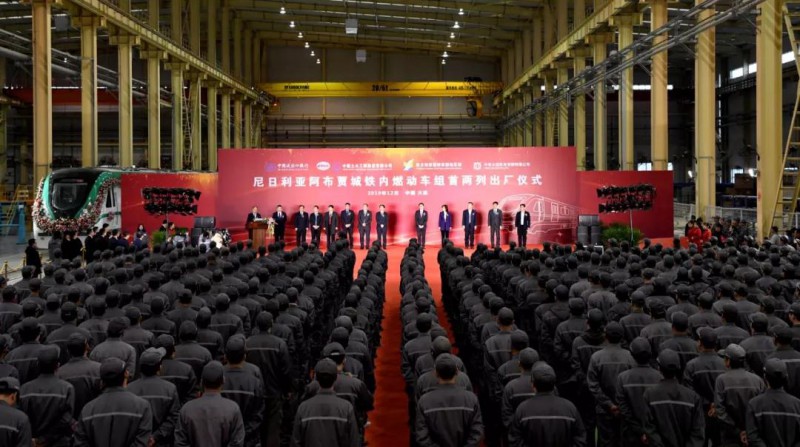 12月20日,尼日利亞阿布賈城鐵內燃動車組首兩列出廠儀式,在中車大連公司旅順新廠區(qū)舉行。
